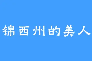 锦西州的美人
