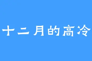十二月的高冷